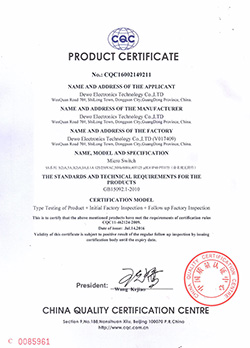 德傲微動開關CQC CB CE證書正式下發